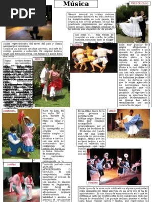 31/01/2020 · pese a ello, dicha organización se articula muy bien, de tal manera que se convierte al gtn en el punto referencial para las artes escénicas y la música en el perú; Esto se debe a que se pudieron encontrar diversos instrumentos musicales que se usaron en esa época. Pero fue la dupla creativa montes y manrique, padres del criollismo, los primeros peruanos en hacer grabaciones de tipo comercial.. La msica peruana va de la mano con la cultura del per ya sea con sus valses criollos por la costa, el folklore por la sierra o por sus tanguios en la selva.